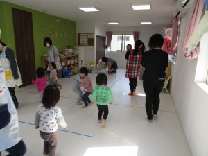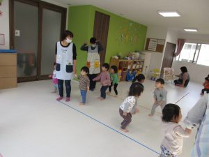 講師の先生の弾く鍵盤ハーモニカに合わせて歩いたり止まったり、