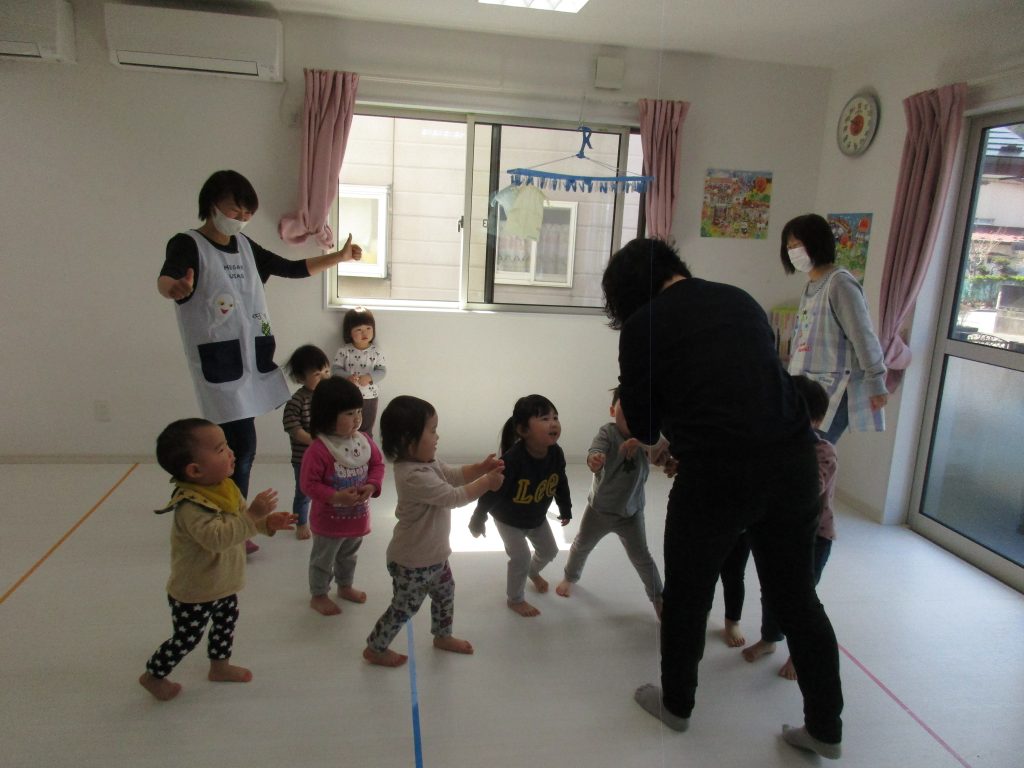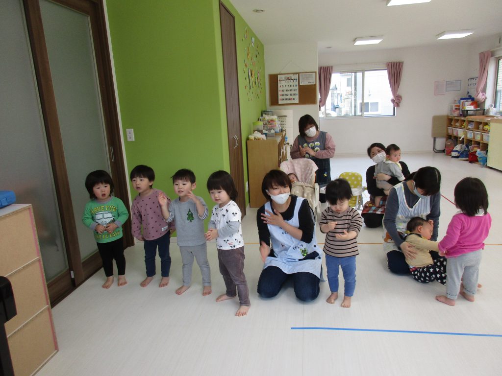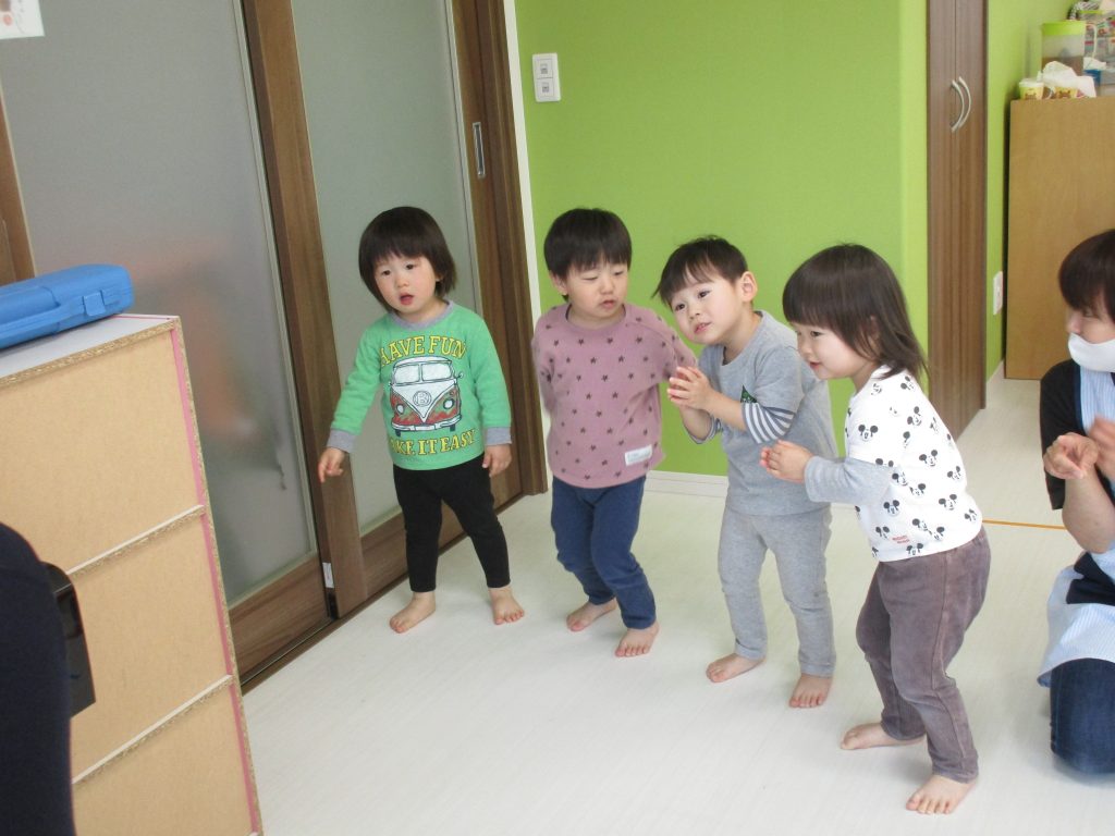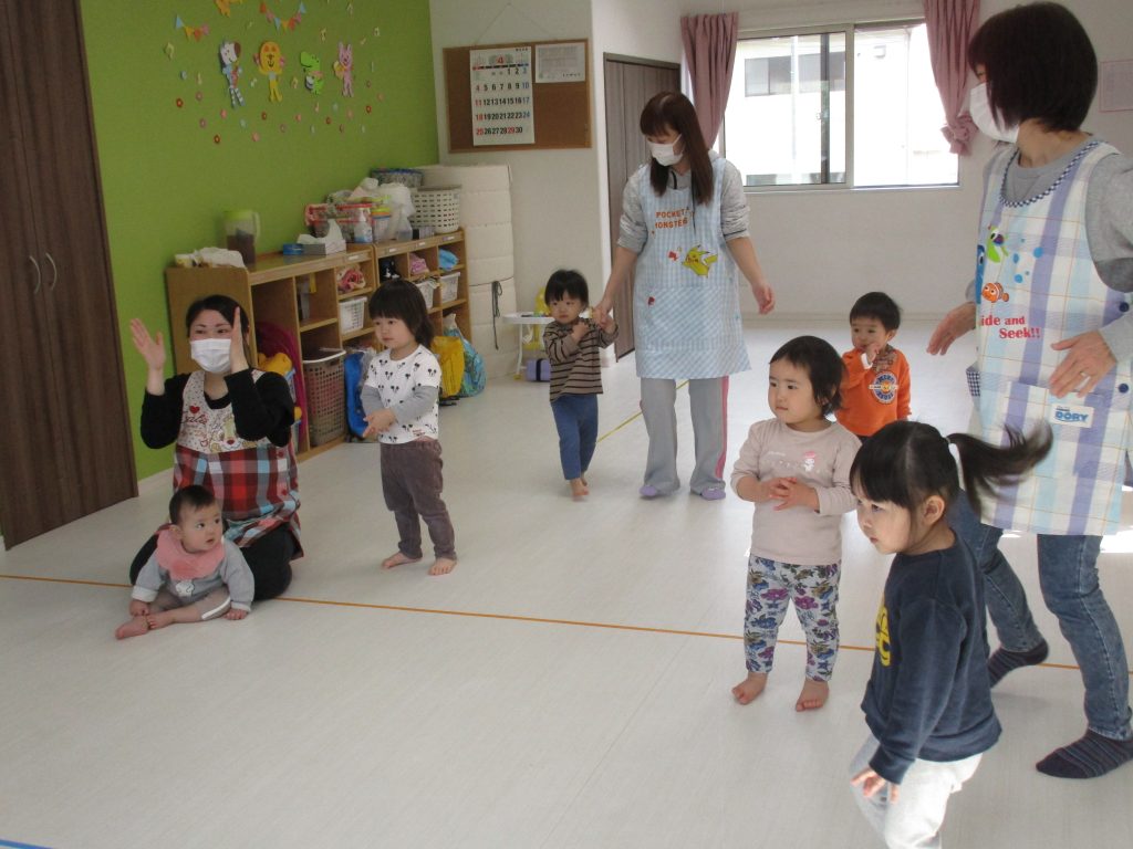 「しあわせなら手をたたこう」のお歌を歌いながら