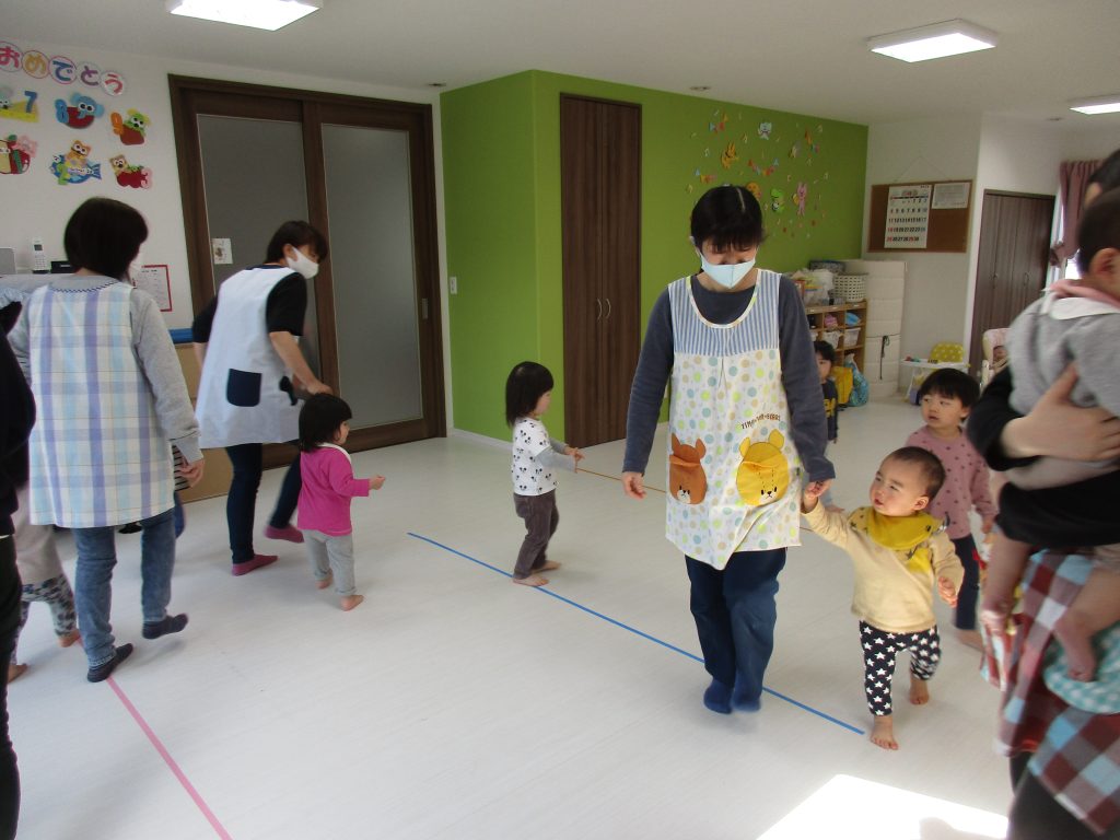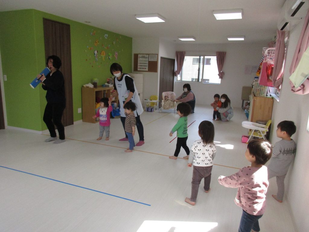 講師の先生の弾く鍵盤ハーモニカに合わせて歩いたり止まったり、