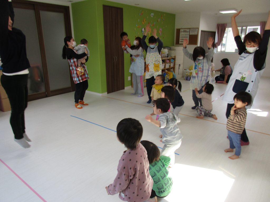 先生達の真似をしてジャンプする子ども達です(*^_^*)