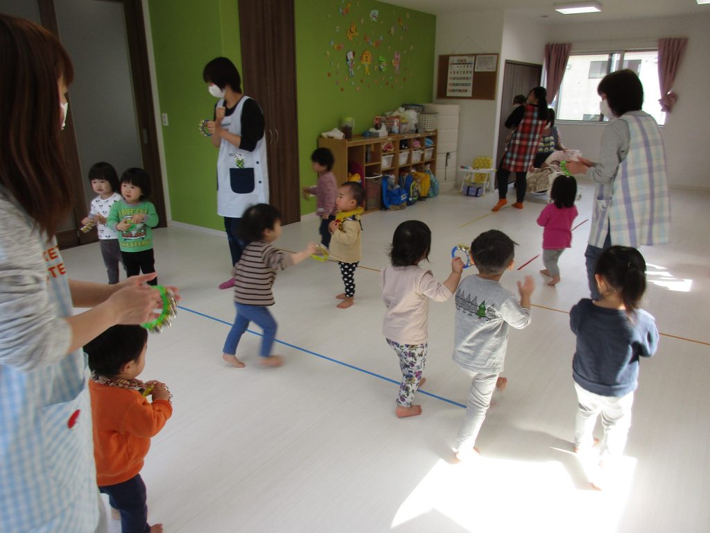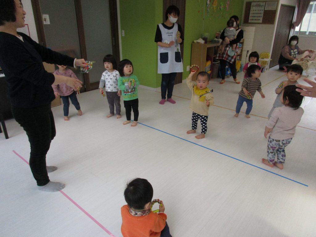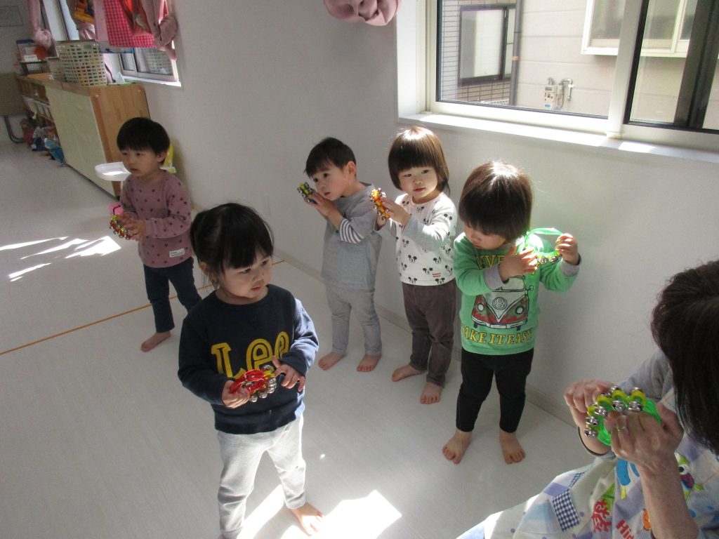1歳児さんも真似ながら頭に鈴を当てている姿、可愛かったです❤(ӦvӦ。)