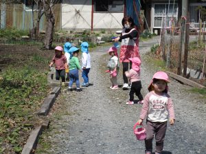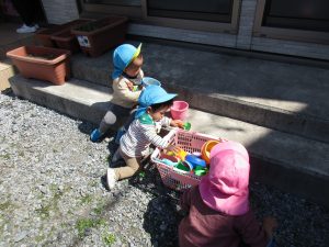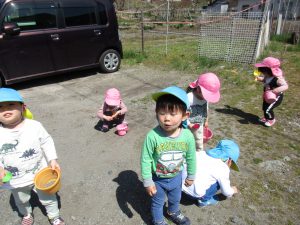 1,2歳児クラスはお外で遊びました!