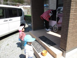 このあとはおんぶで2人ともお外に行き、お兄さんお姉さんクラスのお友達が遊んでいる姿を見たり