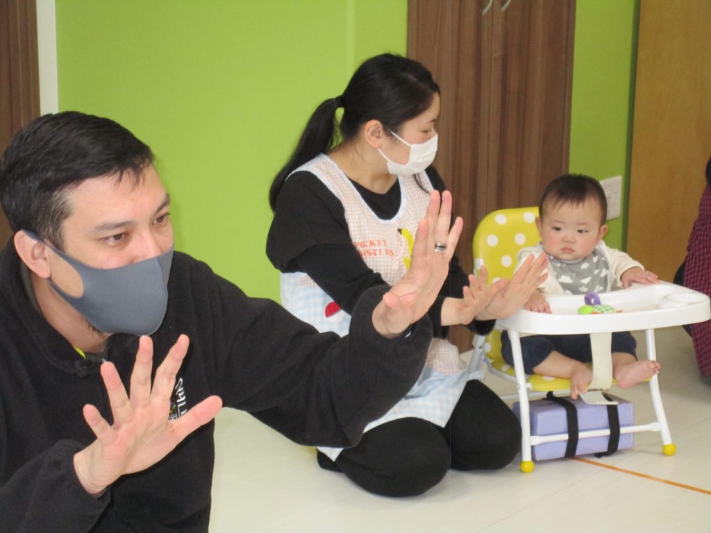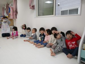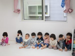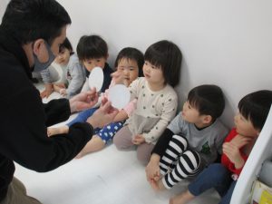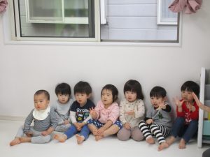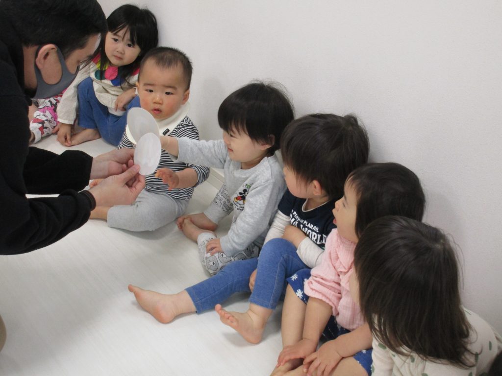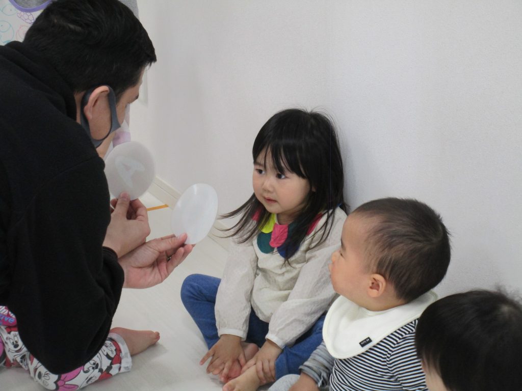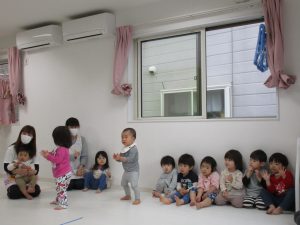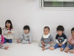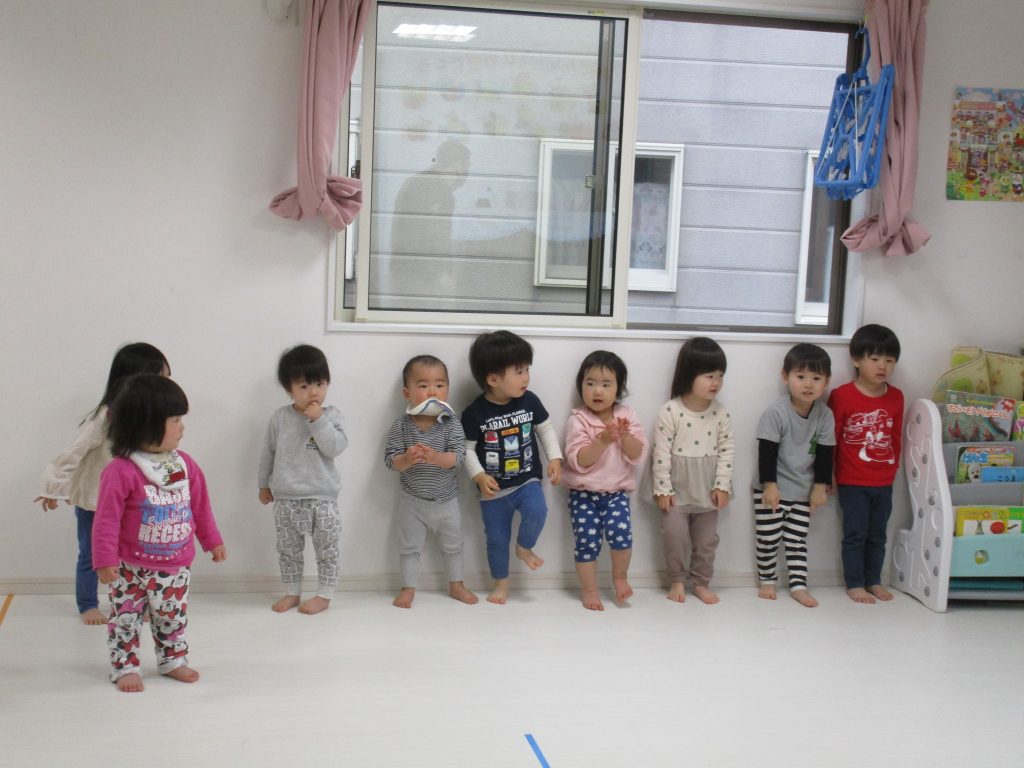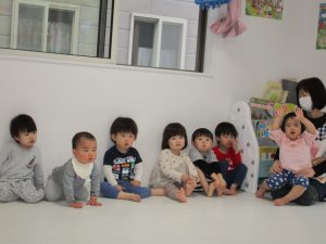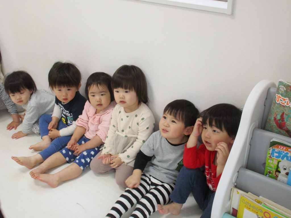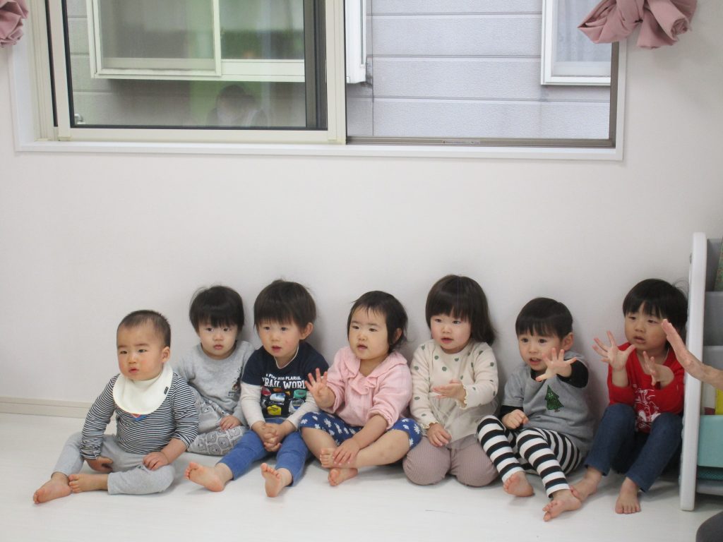 一人ずつ頭をポンとされて、今日いるお友達の数を数えてみました(^o^)