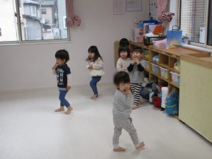 まず始めに「Hello」の曲に合わせて体を動かしましたが、