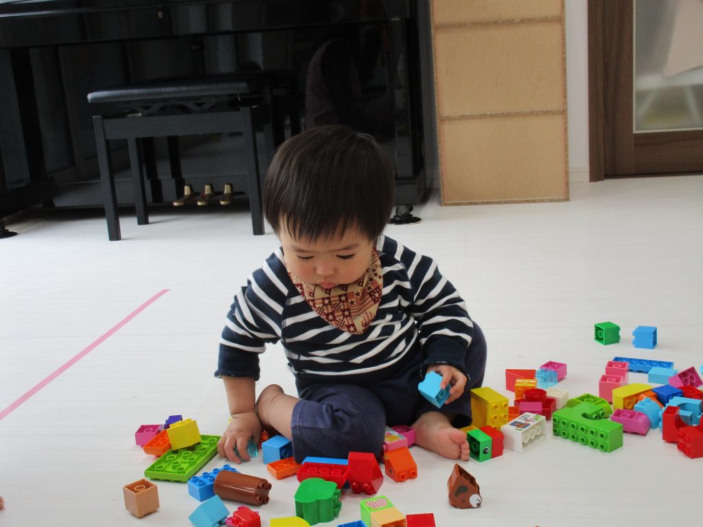 1歳児さんはブロックをしたり、絵本を見たり、好きな遊びを