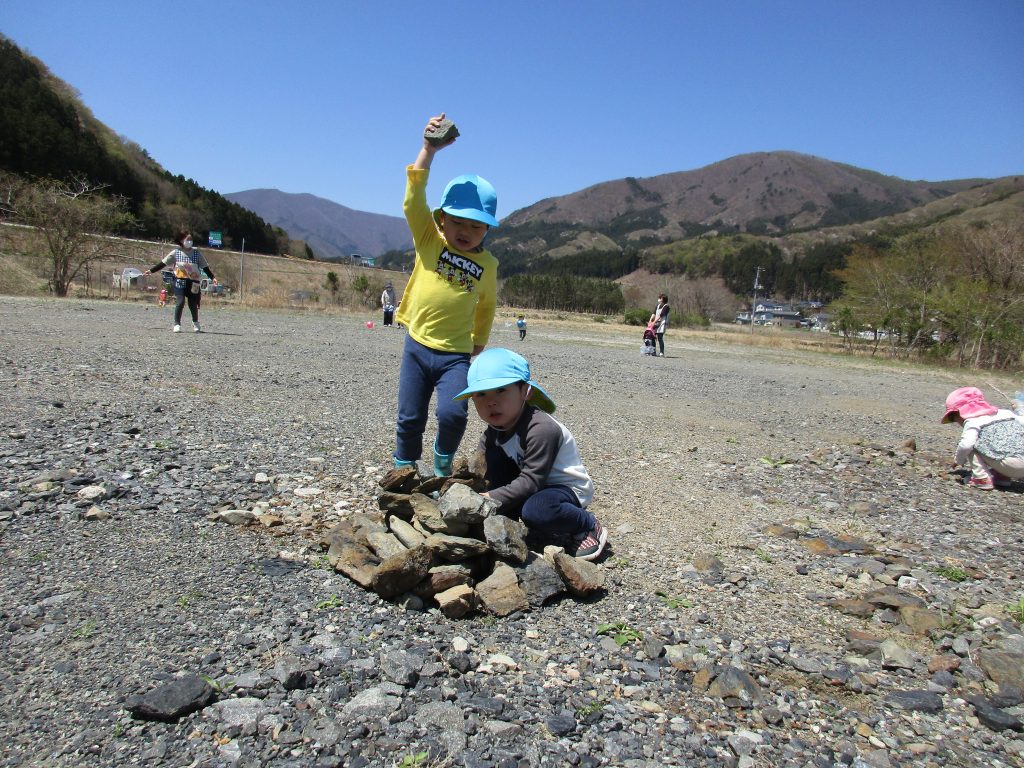 大きな石をたくさん集めて重ね、お家を作っていたお友達もいました(*^_^*)