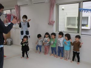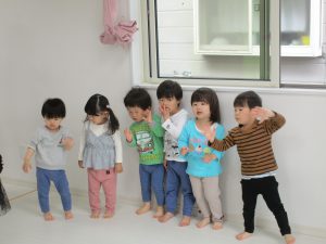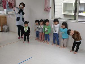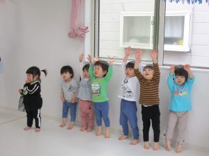 ケン先生の真似をして良く声を出したり、体を動かしたりして