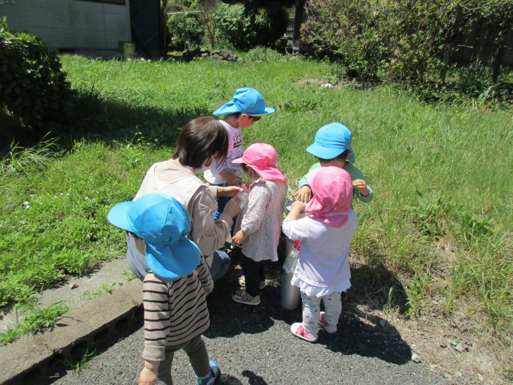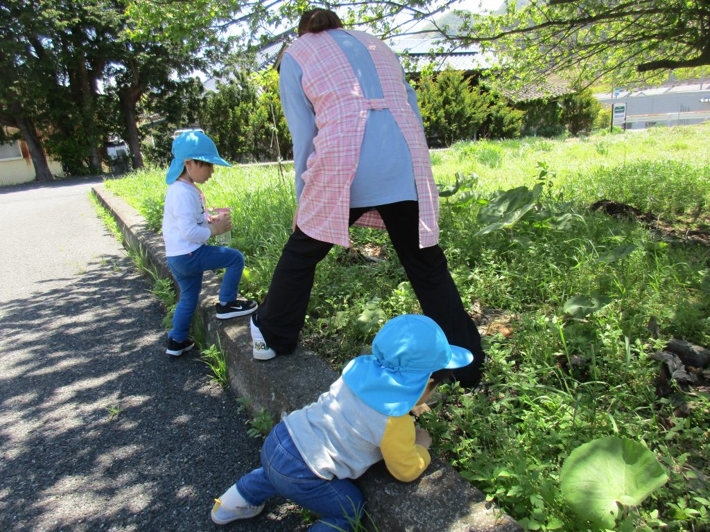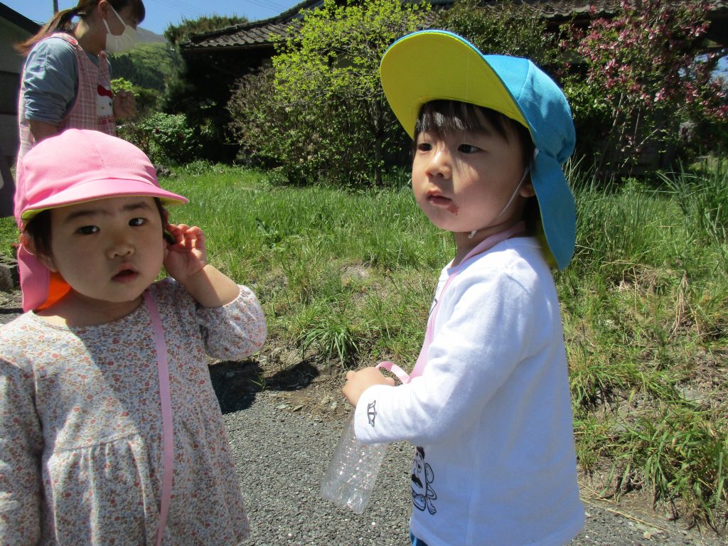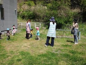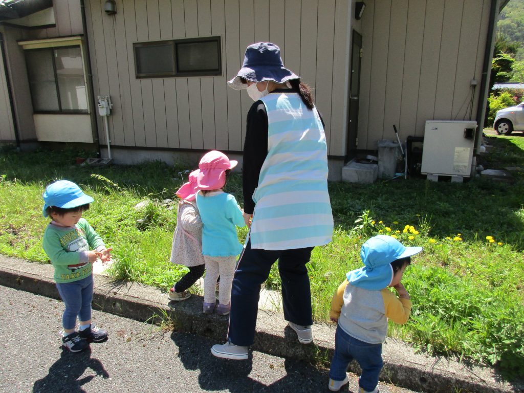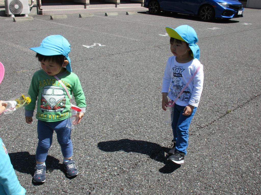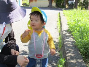 1・2歳児さんはお散歩に出掛け、0歳児さんは園庭で遊びました🌼