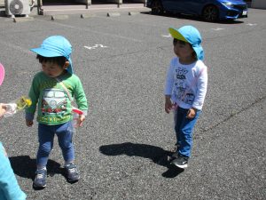 園庭に出るタイミングで小さいお友達はお昼寝タイムに入ってしまい、