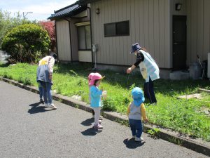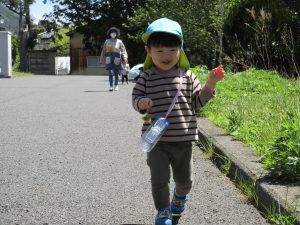 今日はお休みのお友達もいたため、先生と手をつないで歩きました!!