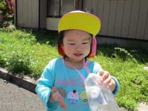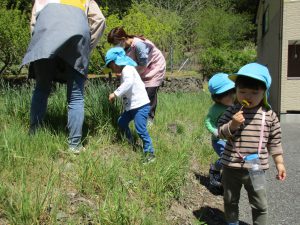 見つけたバッタやお花はお散歩バッグに入れて保育園まで