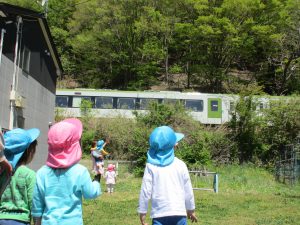 1・2歳児さんは電車の見える空き地までお散歩に行ってきました🌼