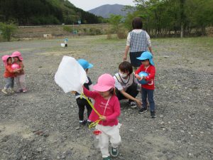 おやつの後は広場でボール遊びや凧上げ、かけっこをして遊びました!!