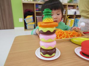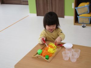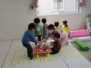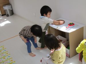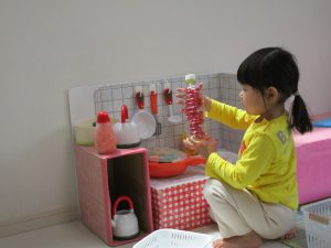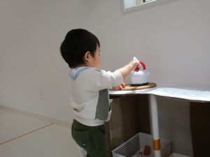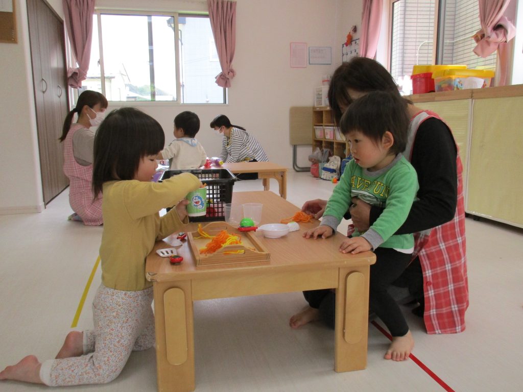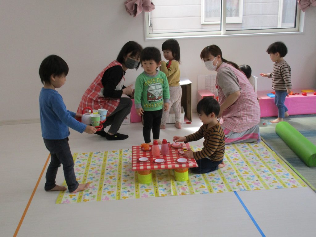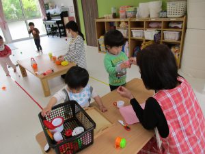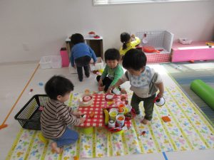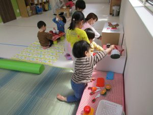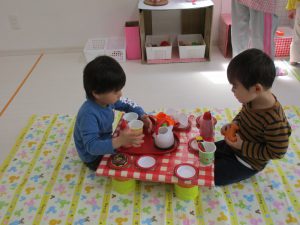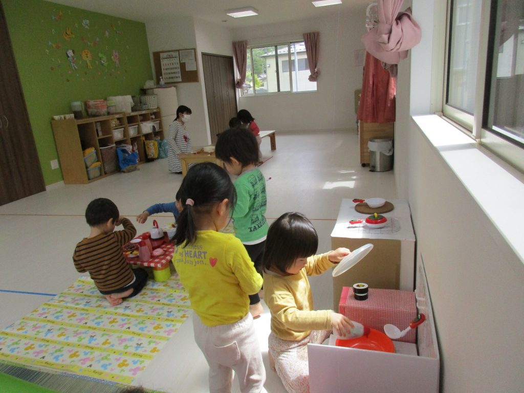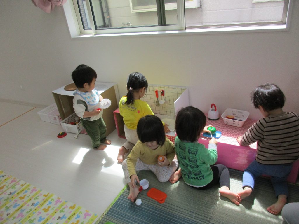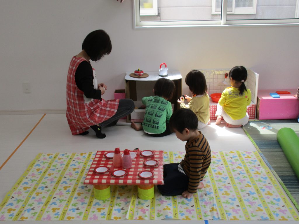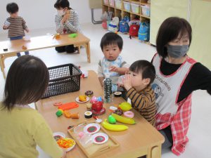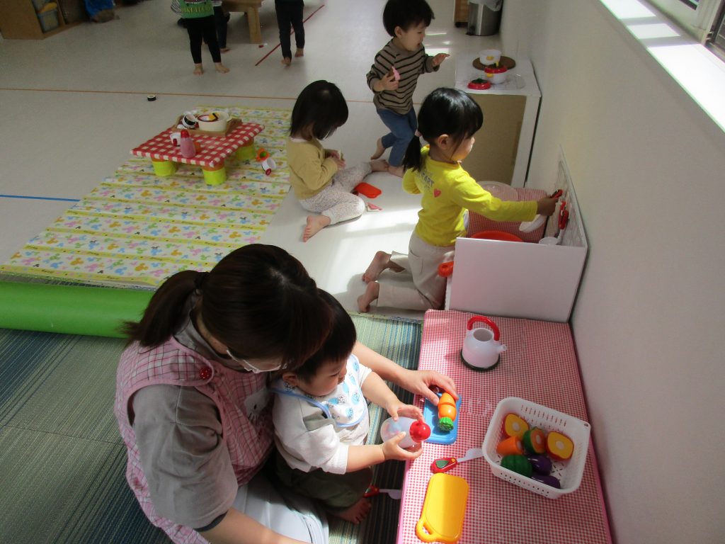 今日は怪しい雲行きだったので1・2歳児さんはお部屋でままごと
