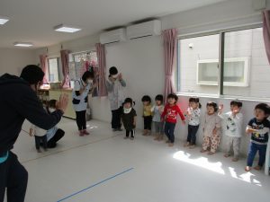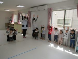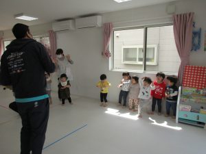 早いリズムの曲でしたが、ついていこうと頑張る子ども達でした(*^_^*)
