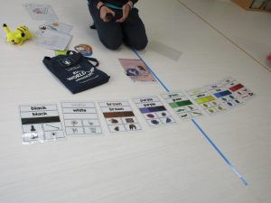 「赤」「青」「黄色」「緑」は子ども達に何色か聞いてみました(^_^)