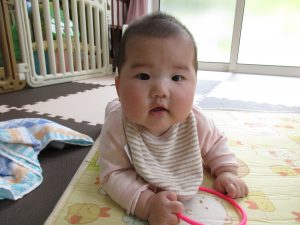 0歳児さんは1人だけの出席でしたが、先生と一対一で
