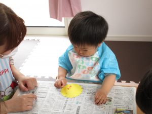 今日は1・2歳児さんは製作遊びをしました!!