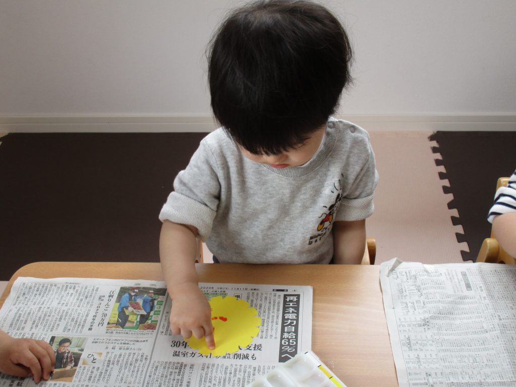 たんぽぽには絵の具を使って指スタンプをしました🌼