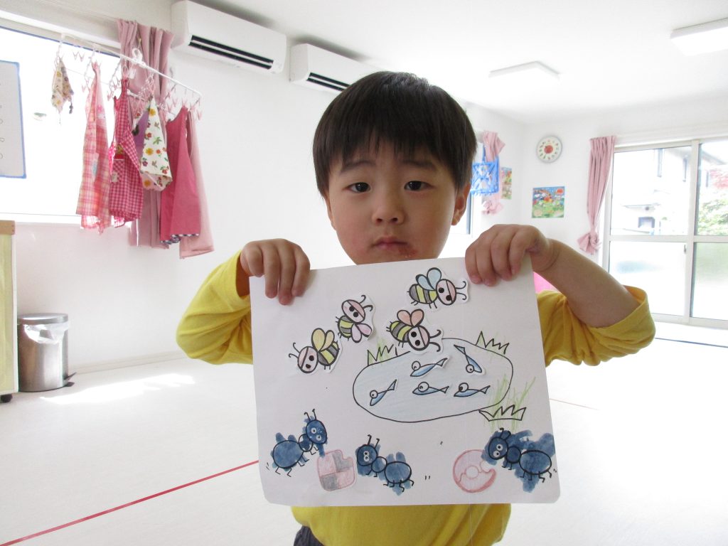 2歳児さんはハチ・めだか・アリの製作をしました!!