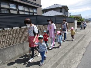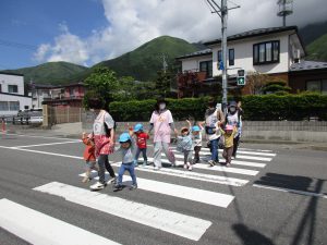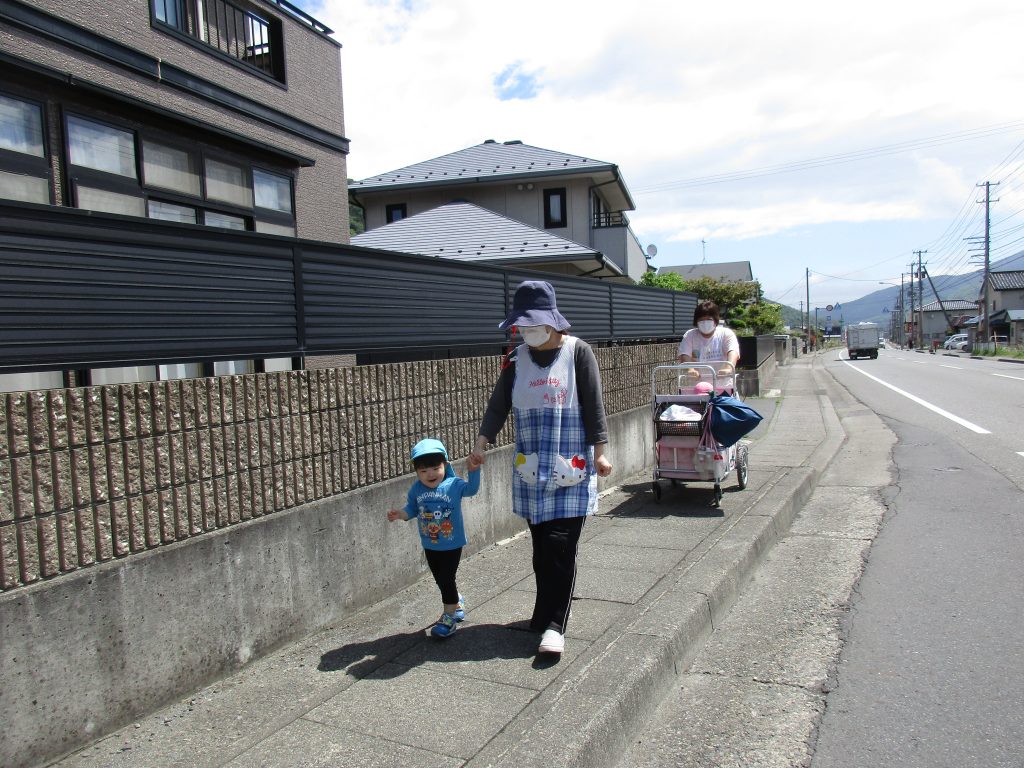 1歳児さんの月齢の高いお友達も行きと帰りで順番に