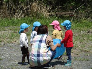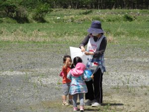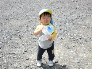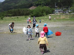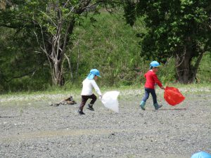 ポリ袋を持っているお友達は広場の手前側からポリ袋を手放し