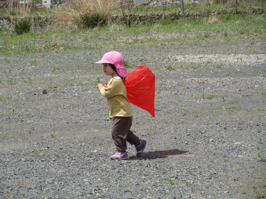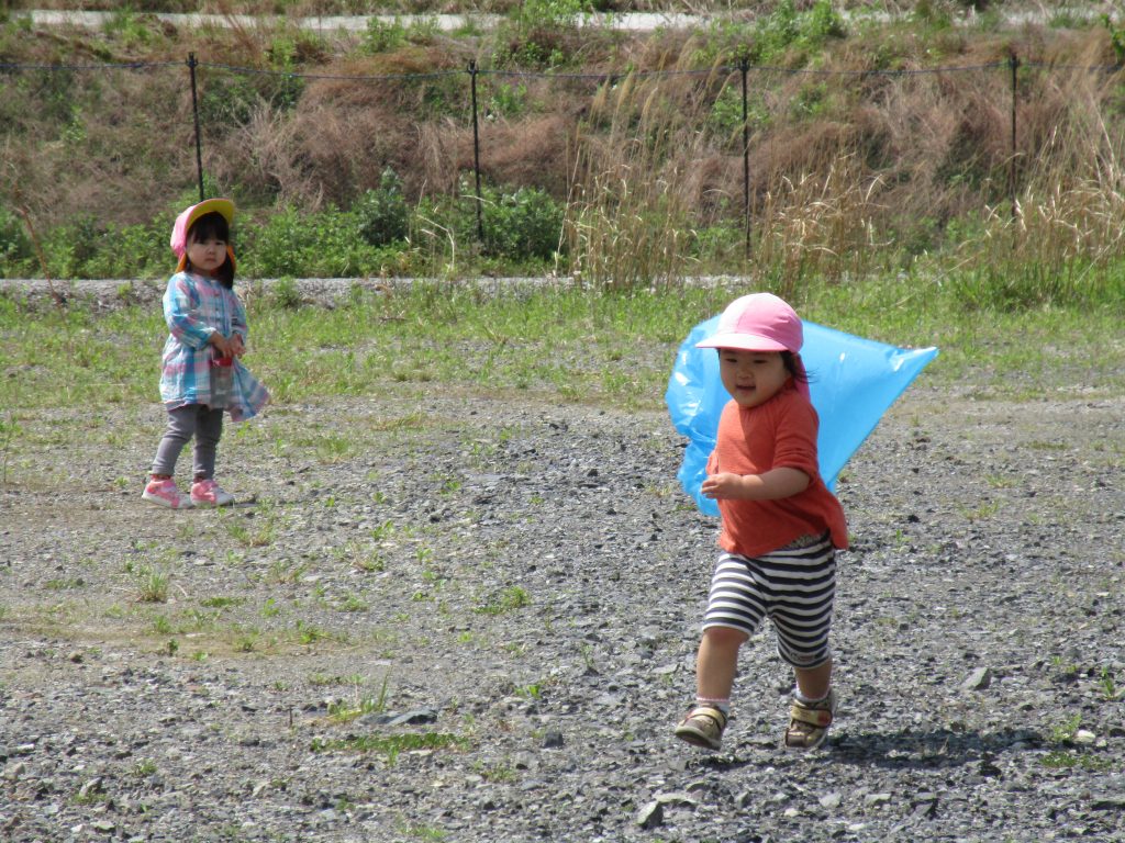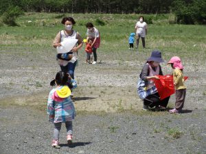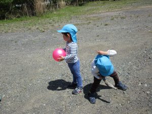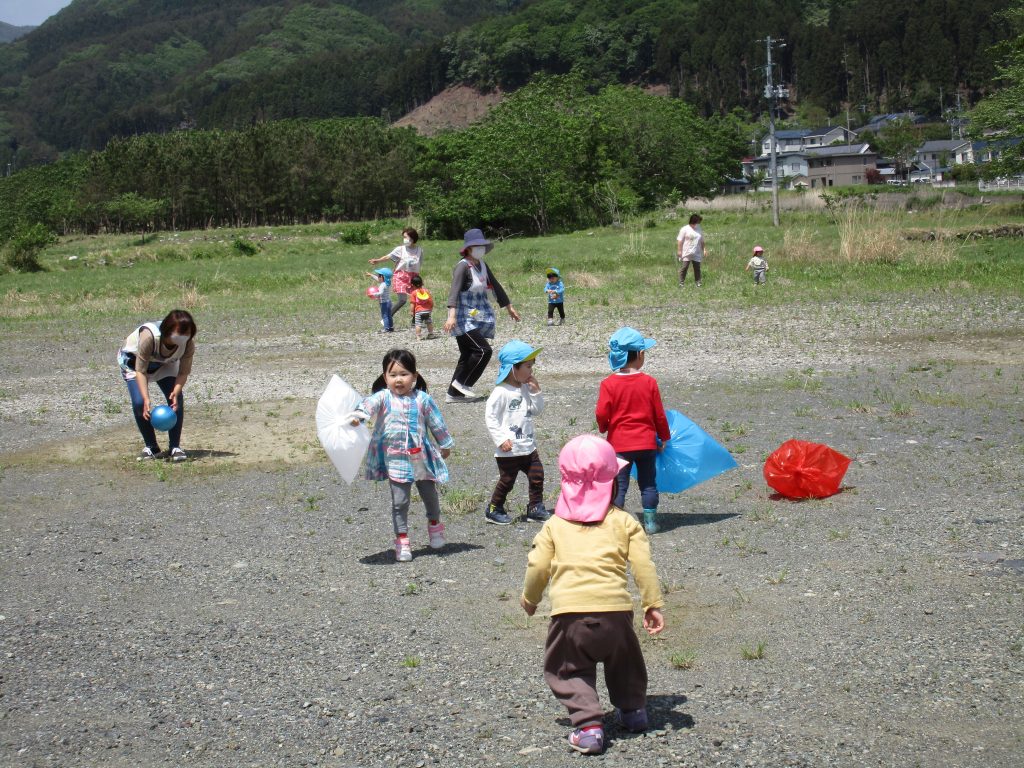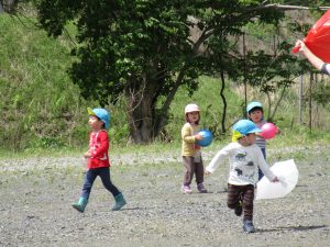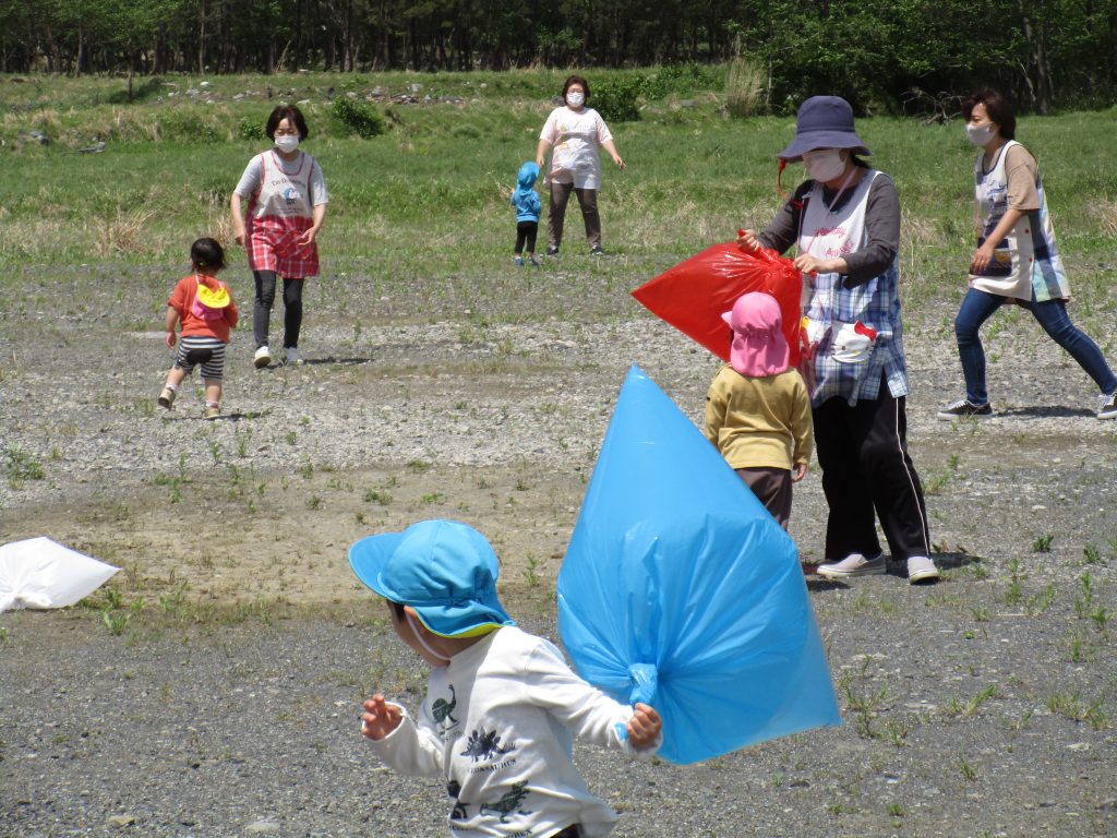 広場ではボール遊びをしたり、カラーポリ袋をふくらませて飛ばしたり