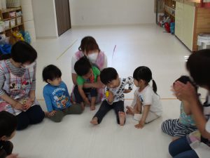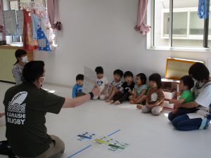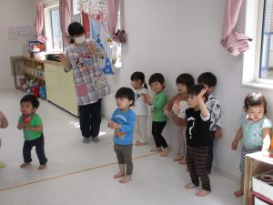 色々な英単語の発音をしたり、お歌に合わせて体を動かしたり、