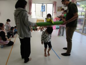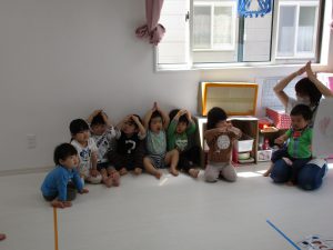 まず始めに「Hello♫」の曲に合わせて体を動かしました!!