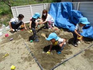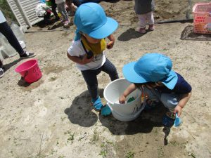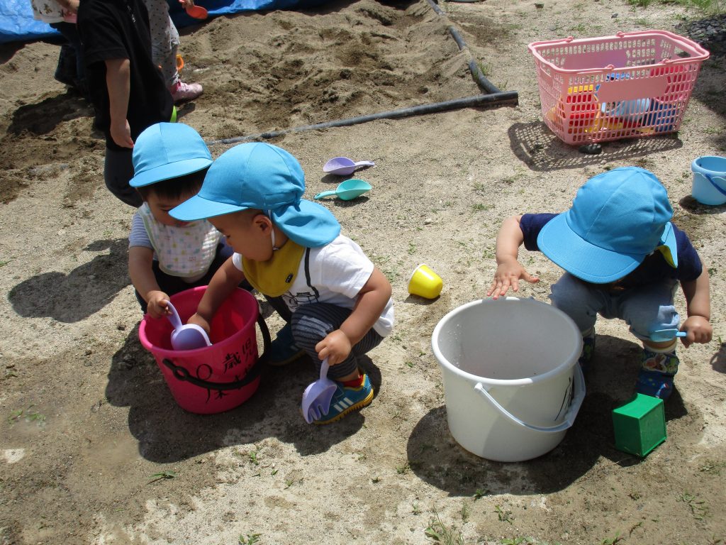 今日は砂遊びの予定をしていましたが、水遊びもしたいという