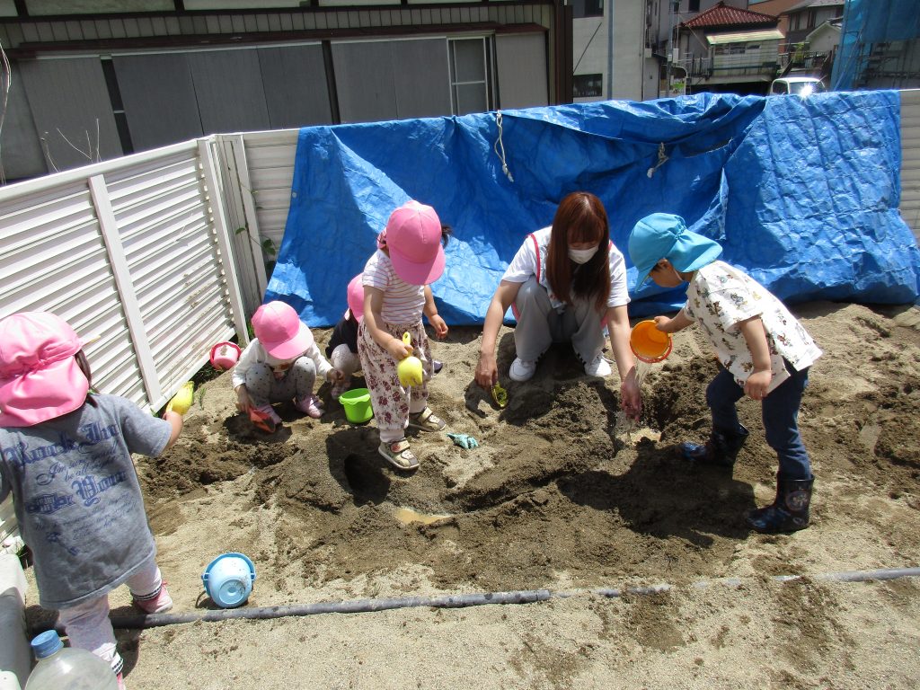そこに水を流したり、ダイナミックに遊ぶ子ども達でした(^o^)