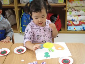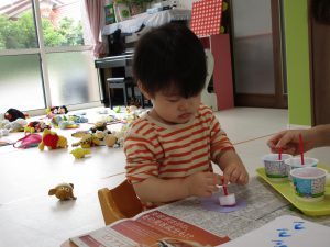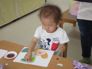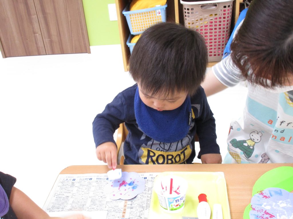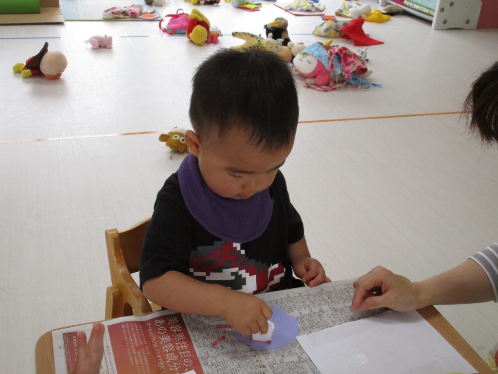 興味を持ってやるお友達、ちょっぴり嫌がるお友達、それぞれでした(*^_^*)
