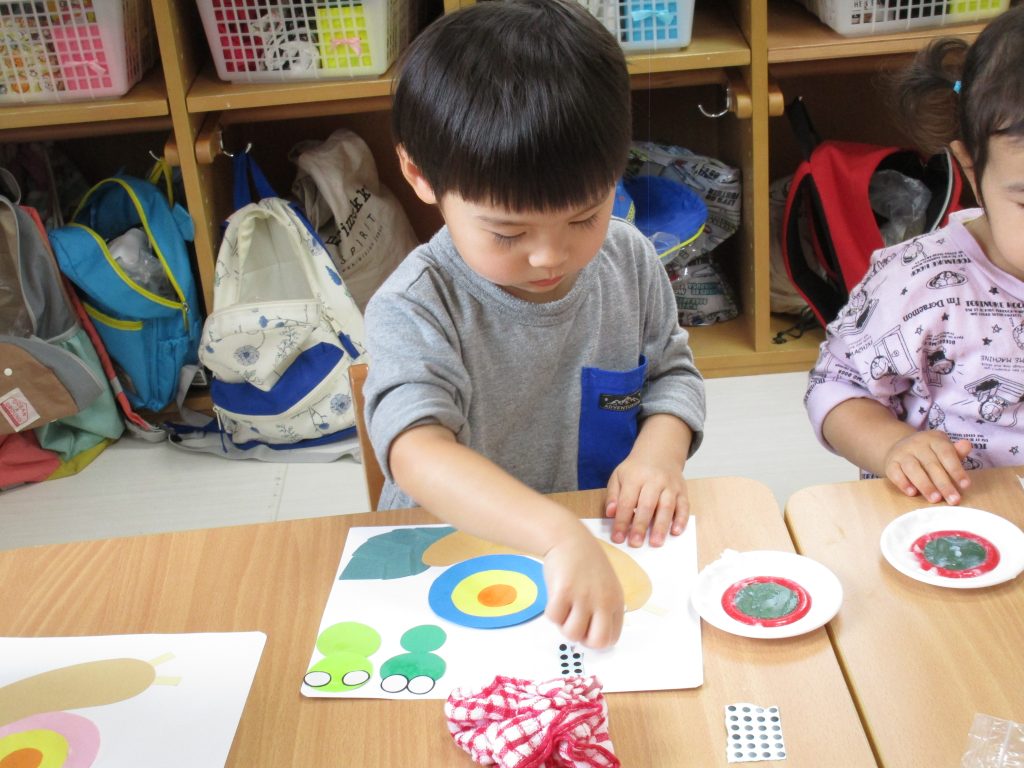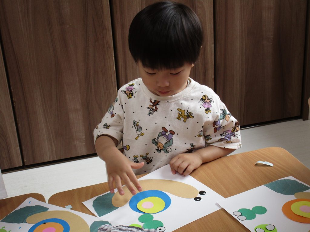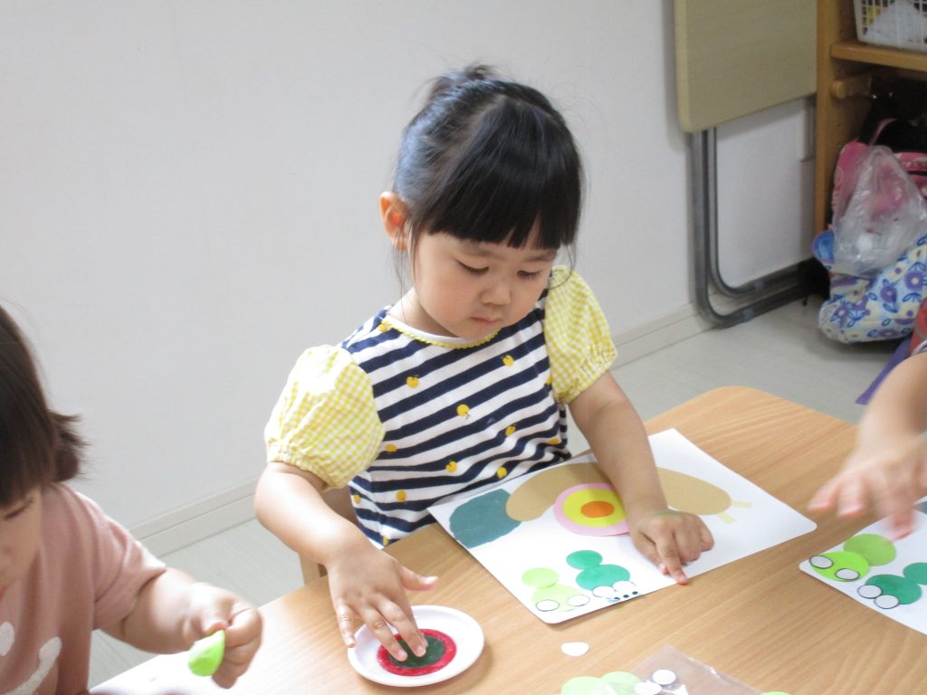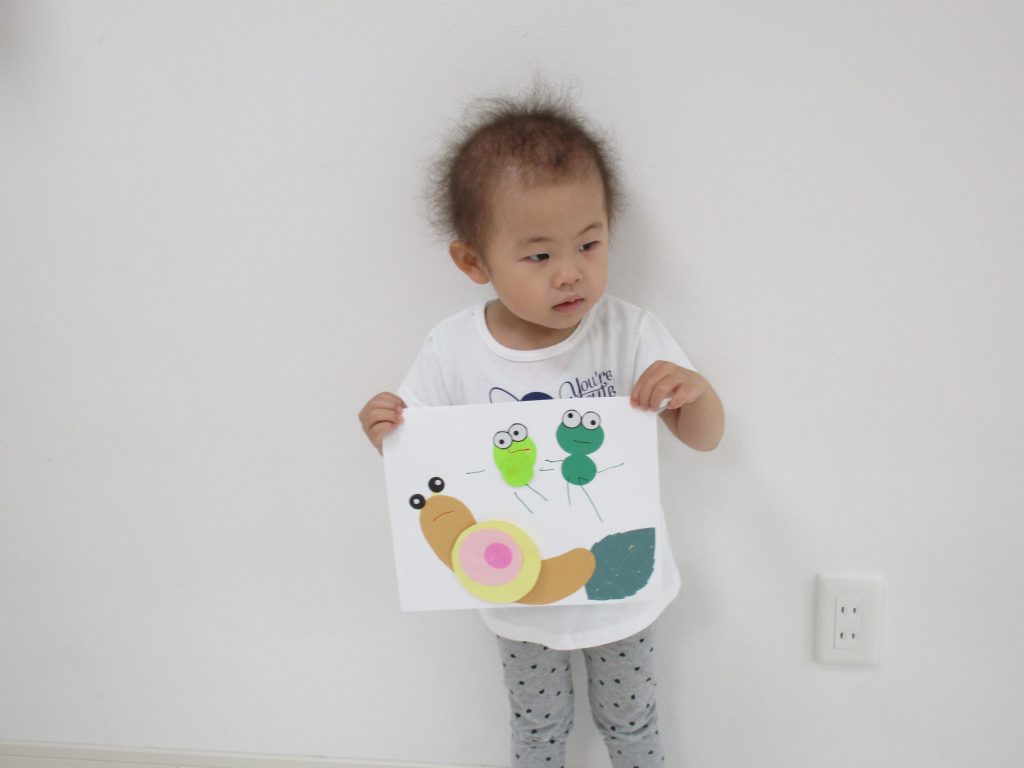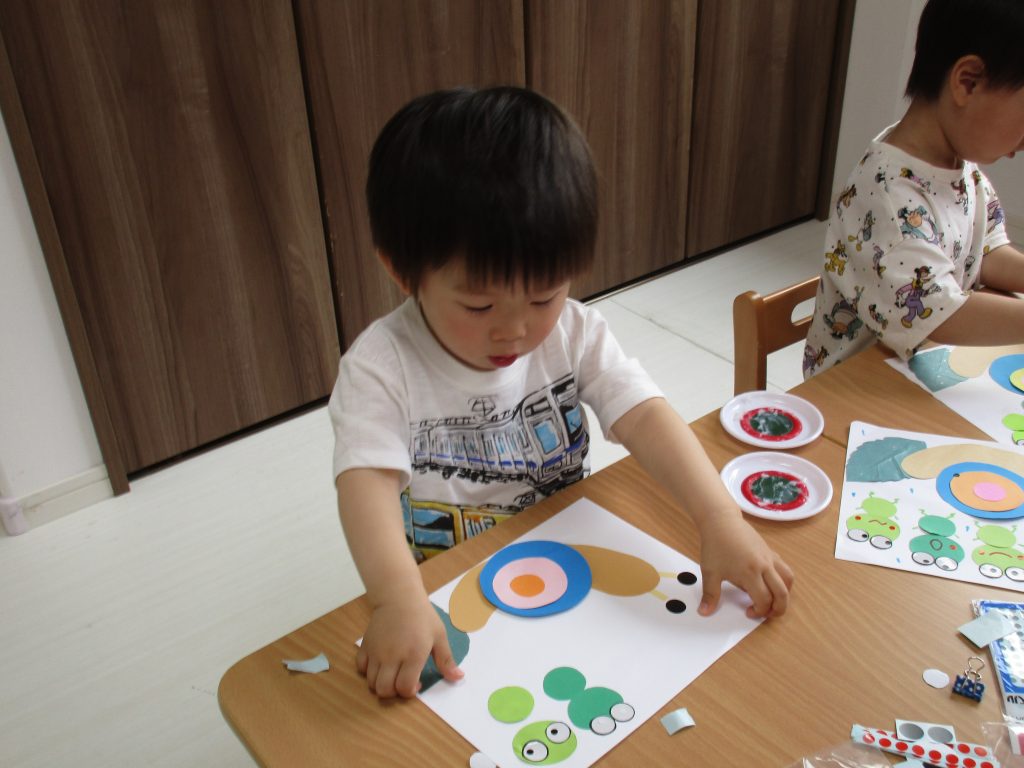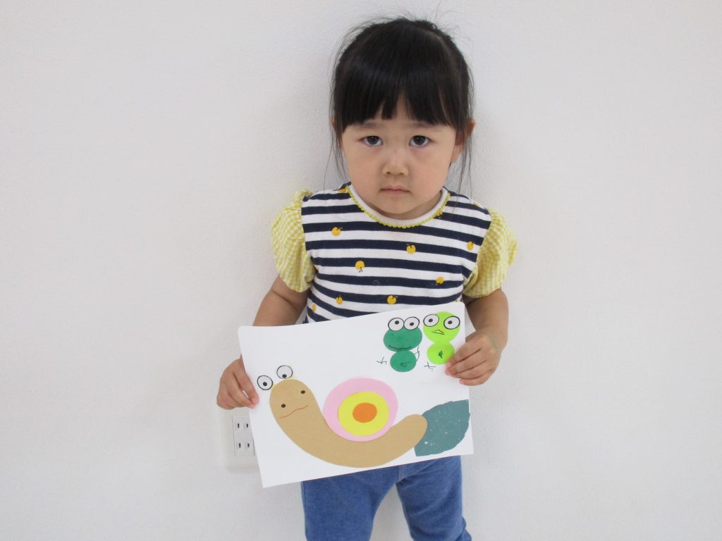2歳児さんは6月の製作でカタツムリとカエルを作りました!!