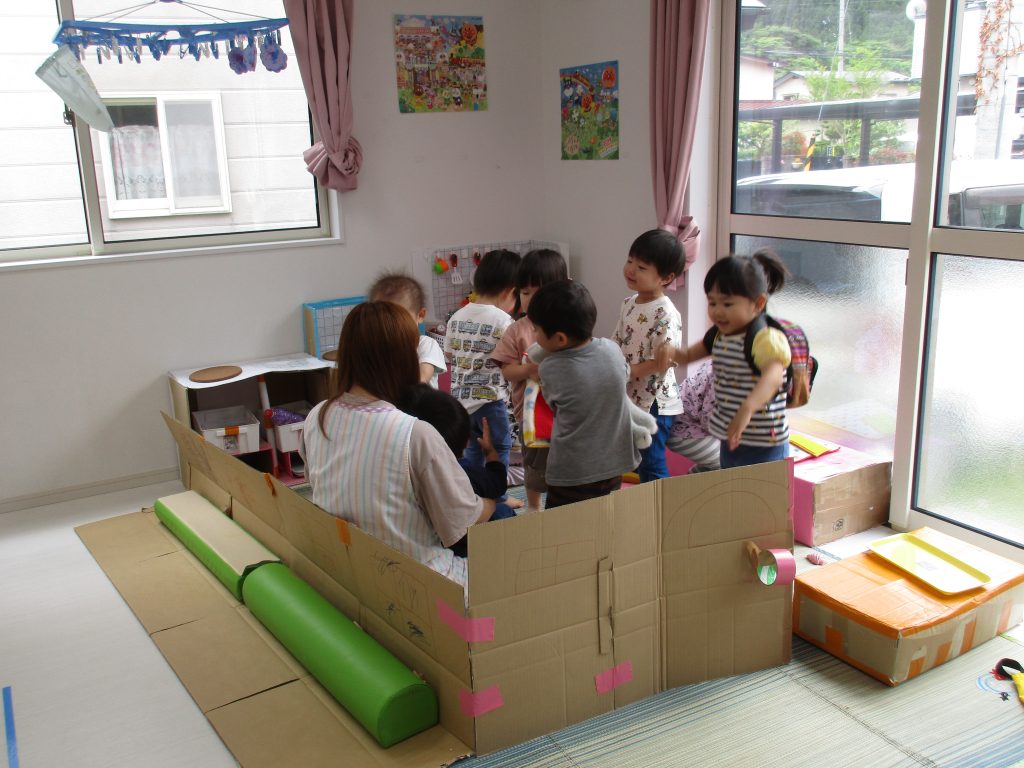 ダンボールでお家を作ってあげると子ども達は大喜び!!