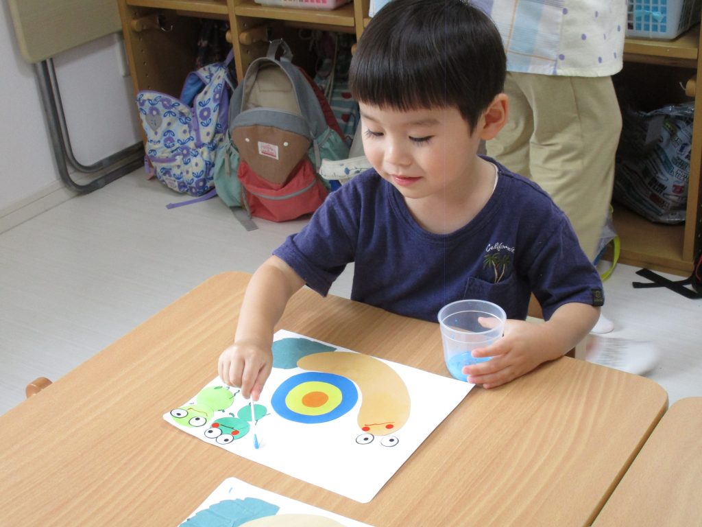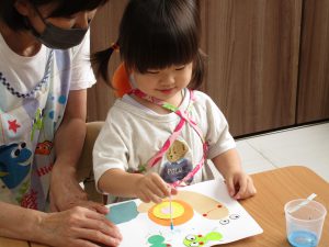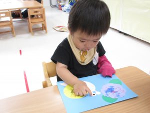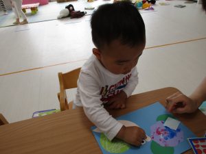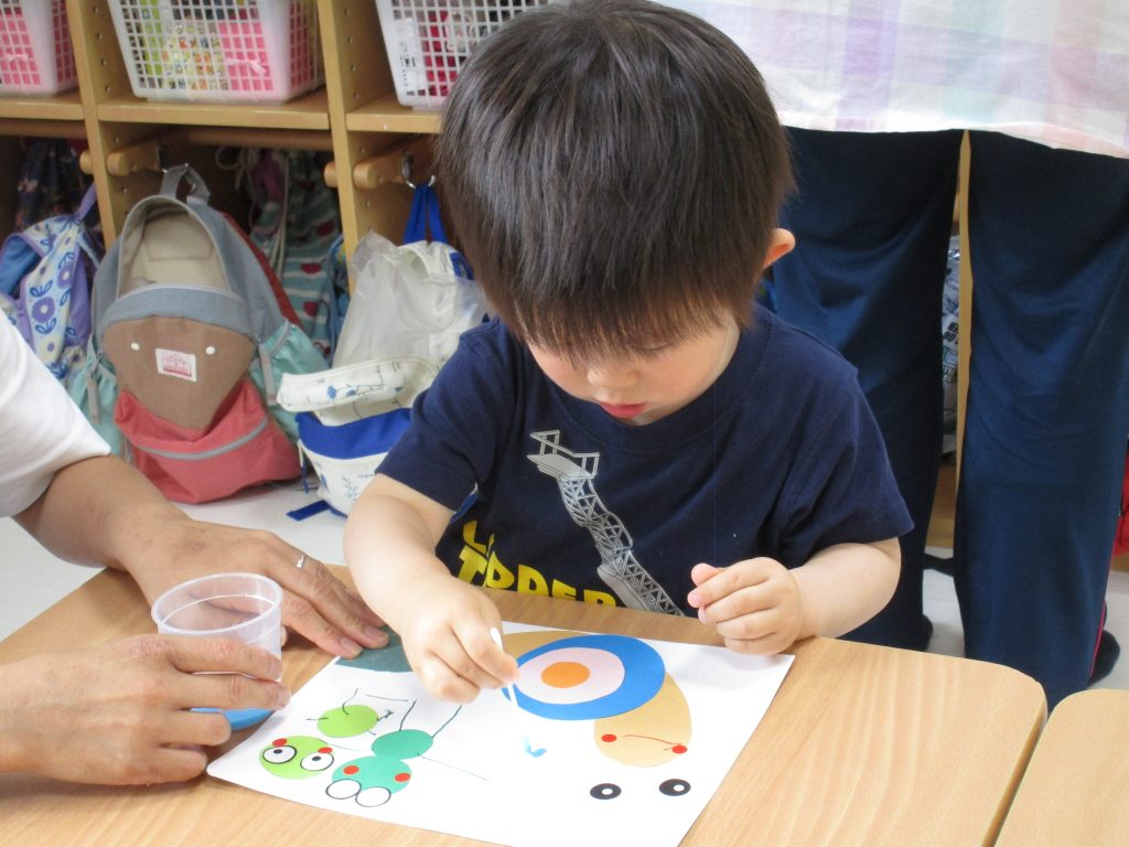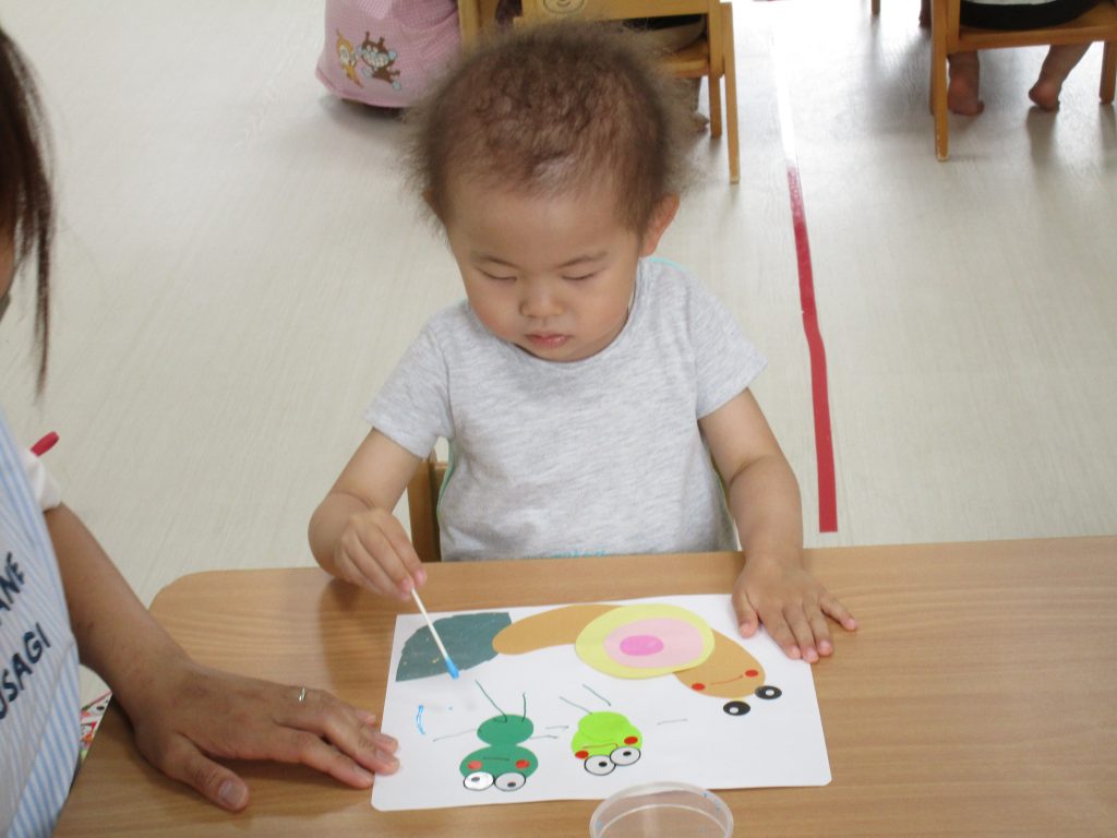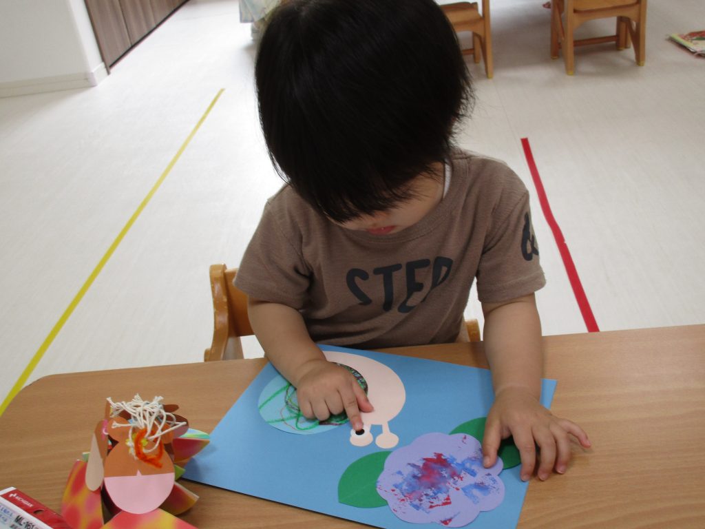 2歳児さんも昨日の続きの製作をしました!!