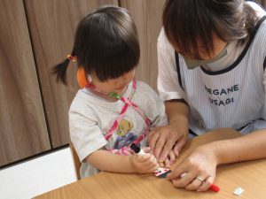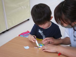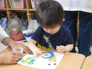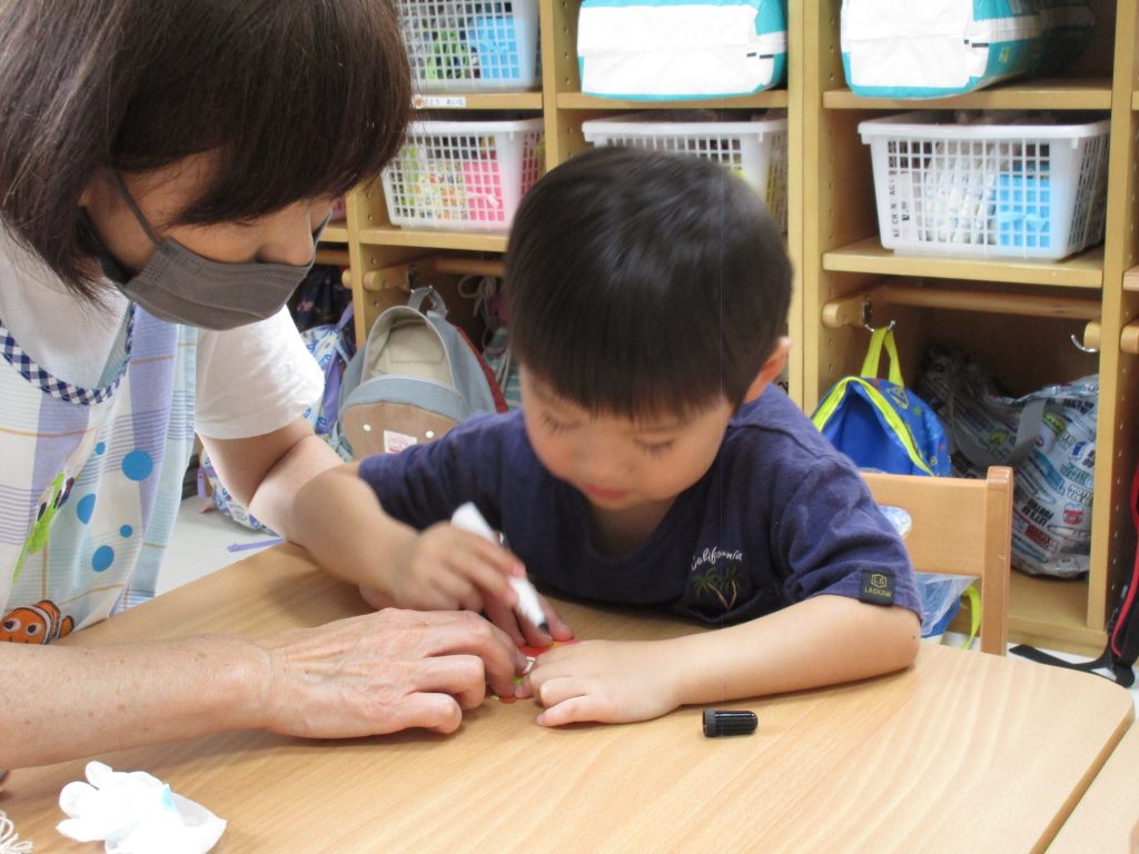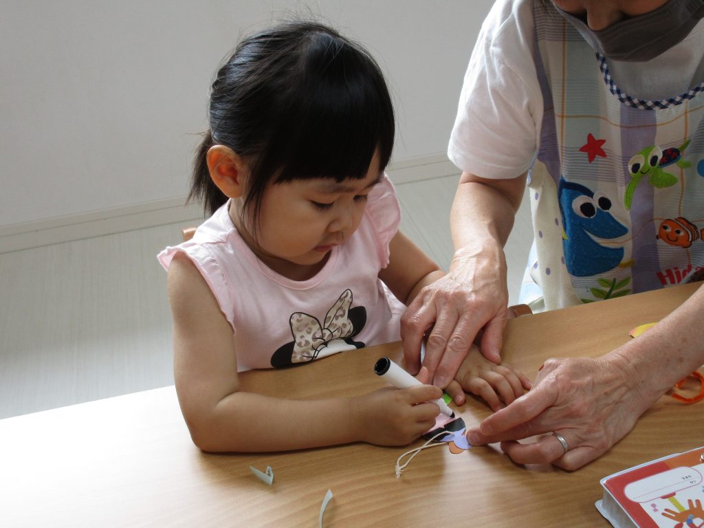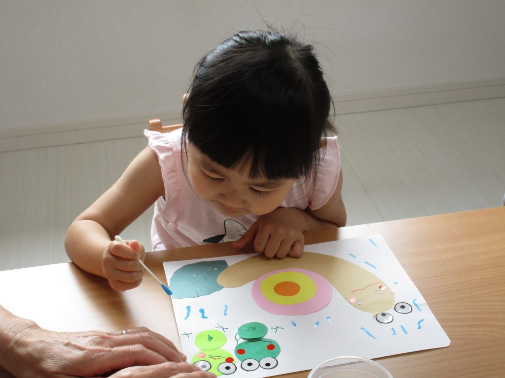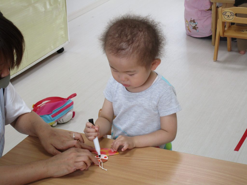 2歳児さんも昨日の続きの製作をしました!!
