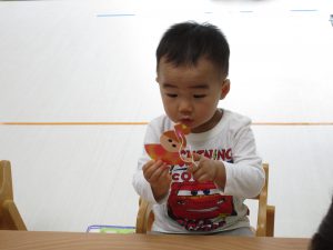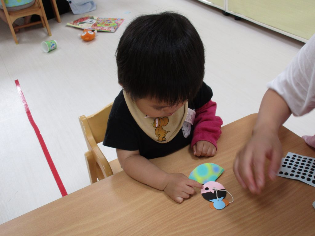 1歳児さんはお目々・お口をシールで貼りました!!