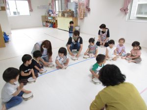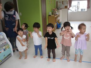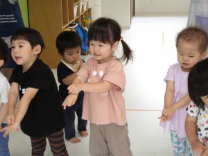 「しあわせなら手をたたこう」のお歌を歌い、