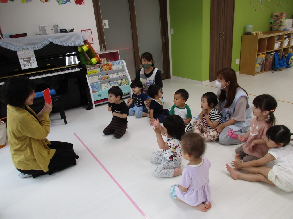 「しあわせなら手をたたこう」のお歌を歌い、