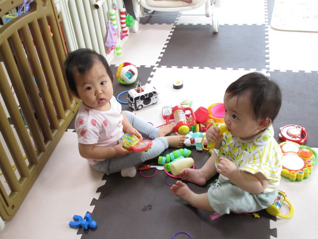 0歳児さんはお部屋で玩具遊びをして過ごしました!!
