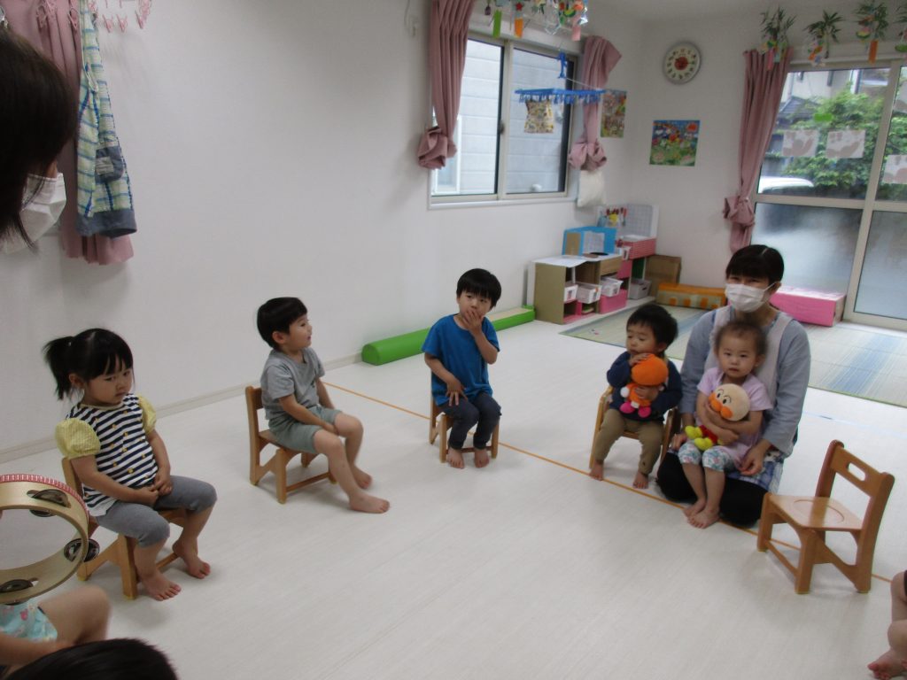 椅子取りゲームをしたり、隣りのお友達の名前を呼びぬいぐるみを手渡すゲームをしたりしました(^o^)