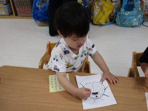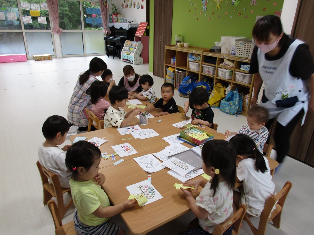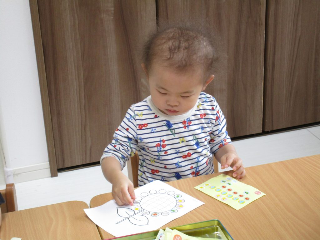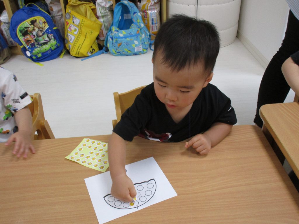 1歳児さんも何となく丸を意識して貼っているようでした(*^_^*)