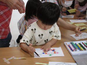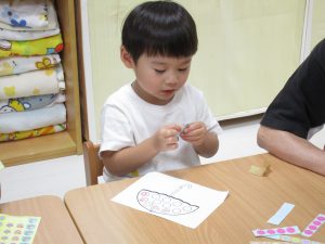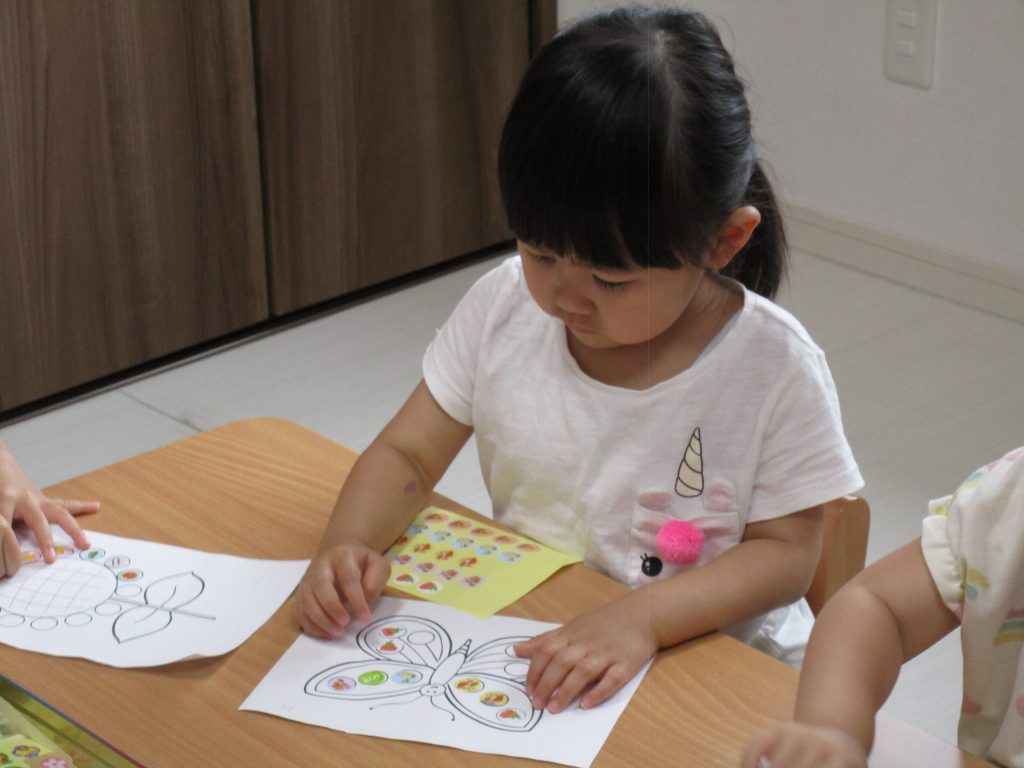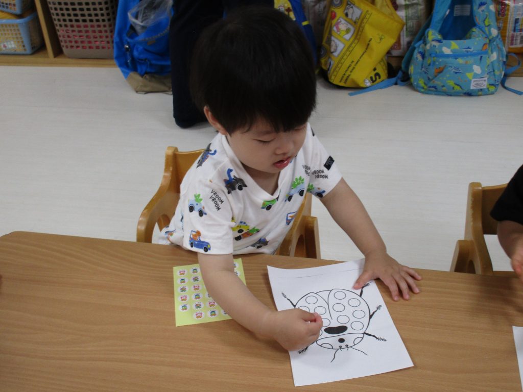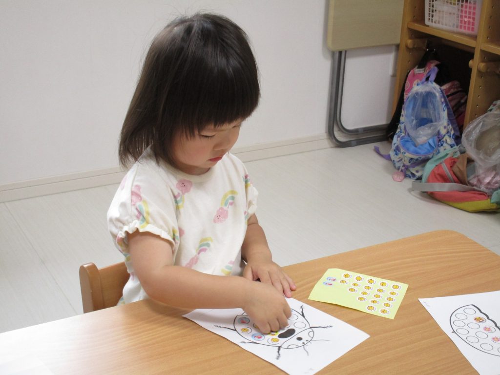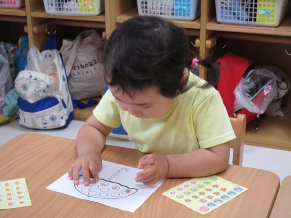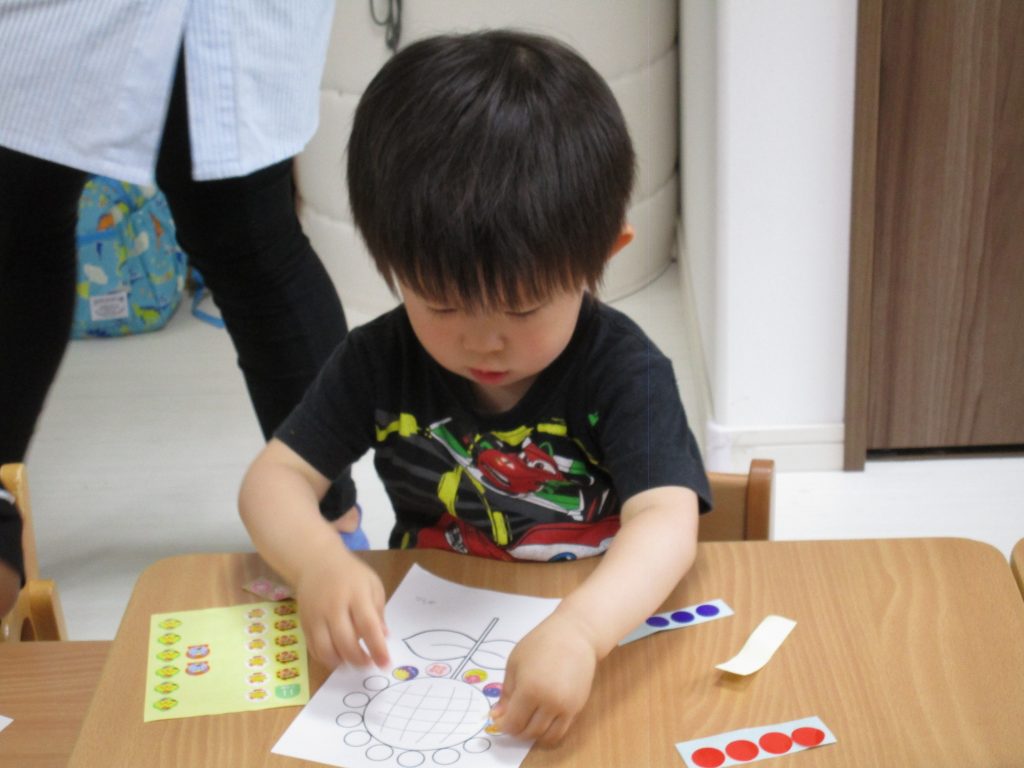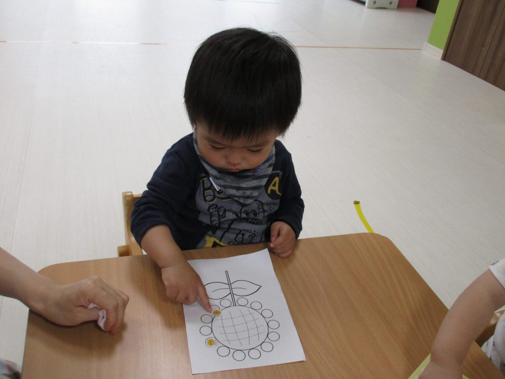 2歳児さんはしっかり丸に合わせて貼っていました(^o^)v