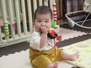 自分の好きな玩具を手に取り、お口へ入れてみたり、