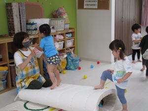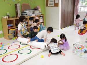 ハウス・ボールプール・マットを使って体を動かして遊びました!!