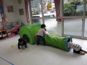 トンネルやハウスはお友達と一緒に狭い空間に入るのが楽しいようで、