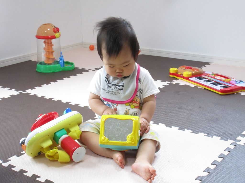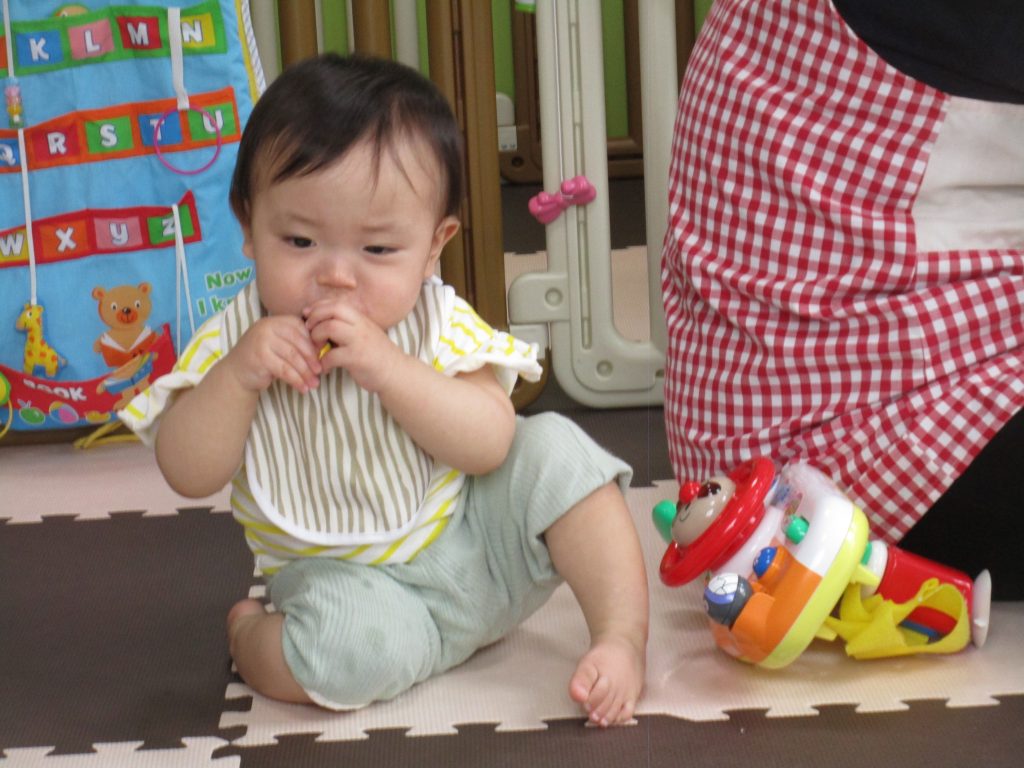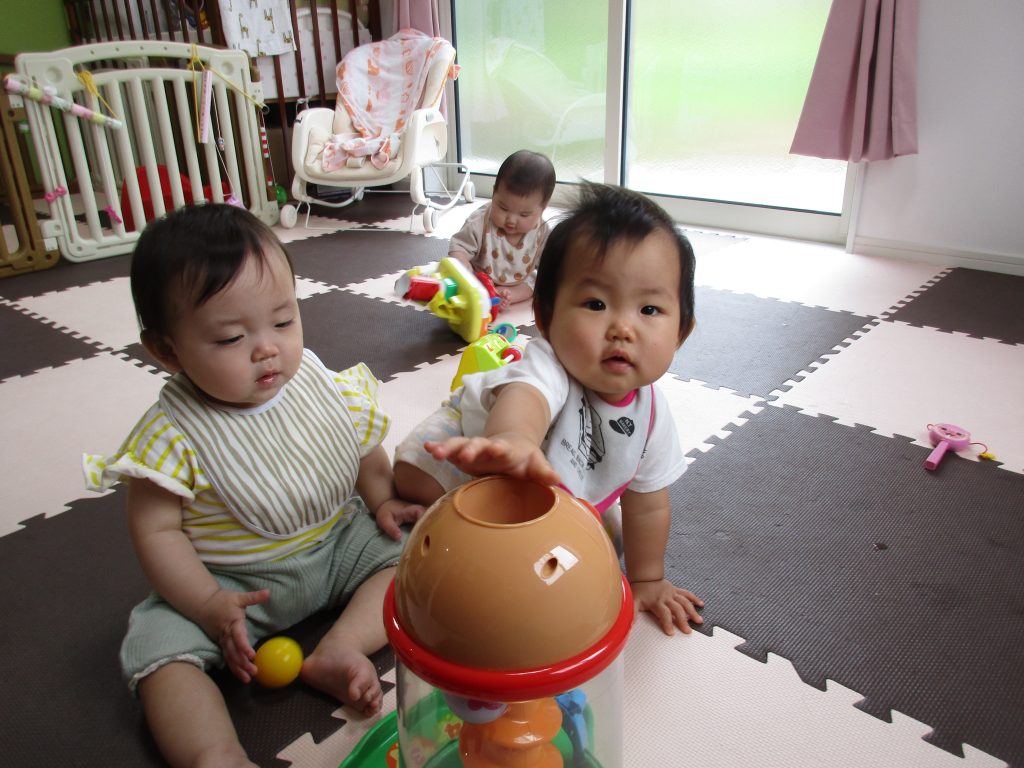 0歳児さんはキーボードやボール落とし等、音の出る玩具で遊びました!!