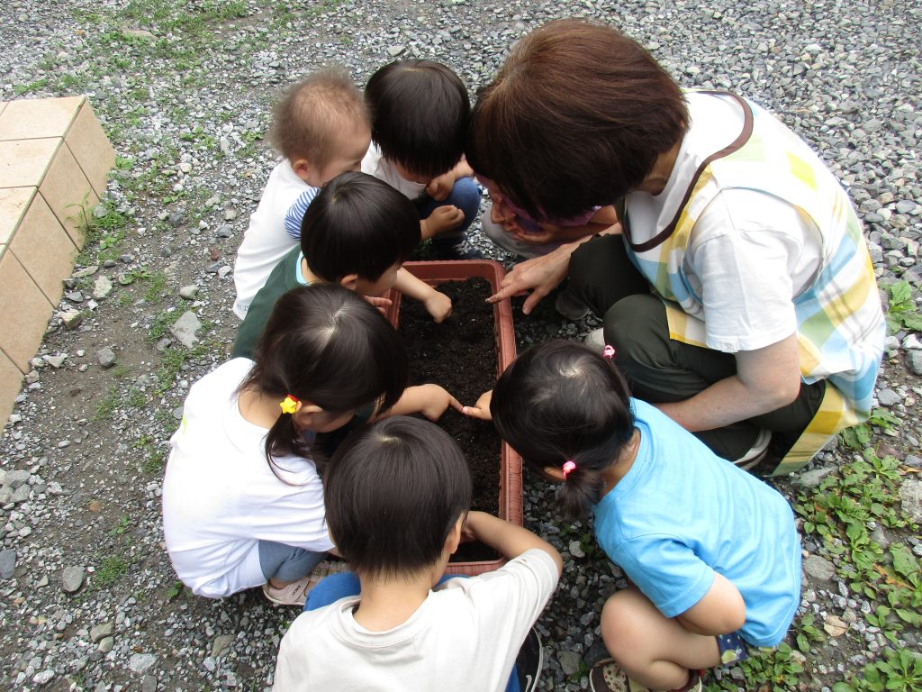 2歳児さんはプランターにラディッシュの種植えをしました!!