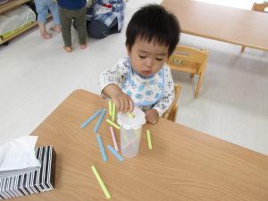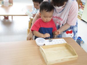 1歳児さんはモンテッソーリ教具を使って活動しました!!
